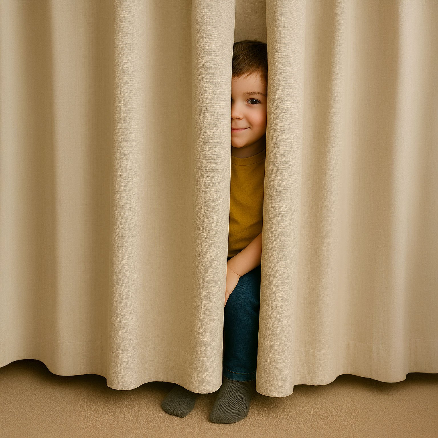 • The helper instructs the child to hide in the room while they close their eyes and count to 10.