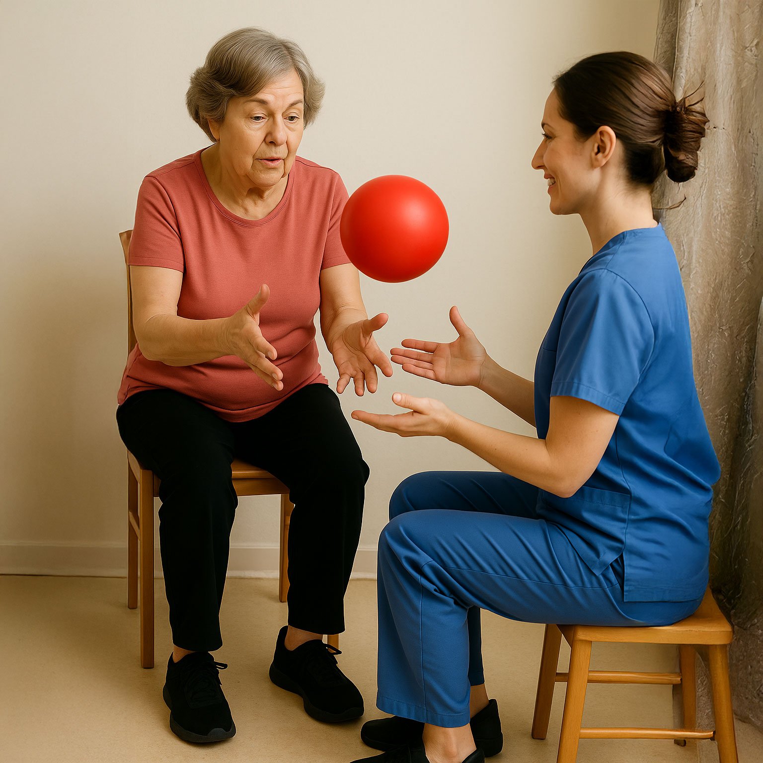 - The participant and helper sit facing each other, about 4–5 feet apart.