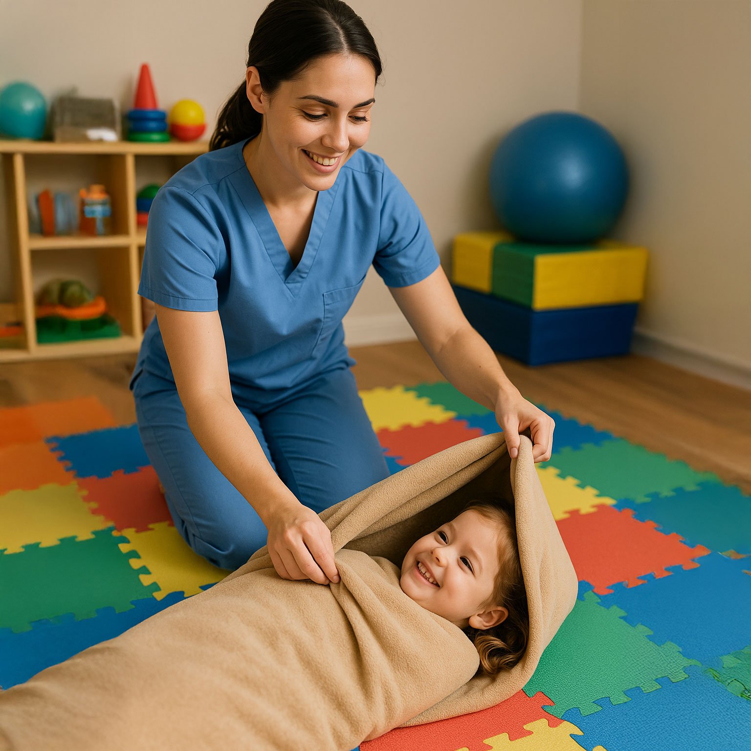 Gently massage the child’s arms, back, and legs, being mindful of their comfort level.