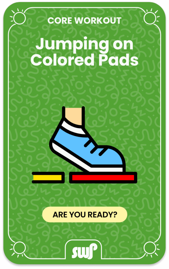 – The Participant jumps on the pads in the color sequence shown on the cards.