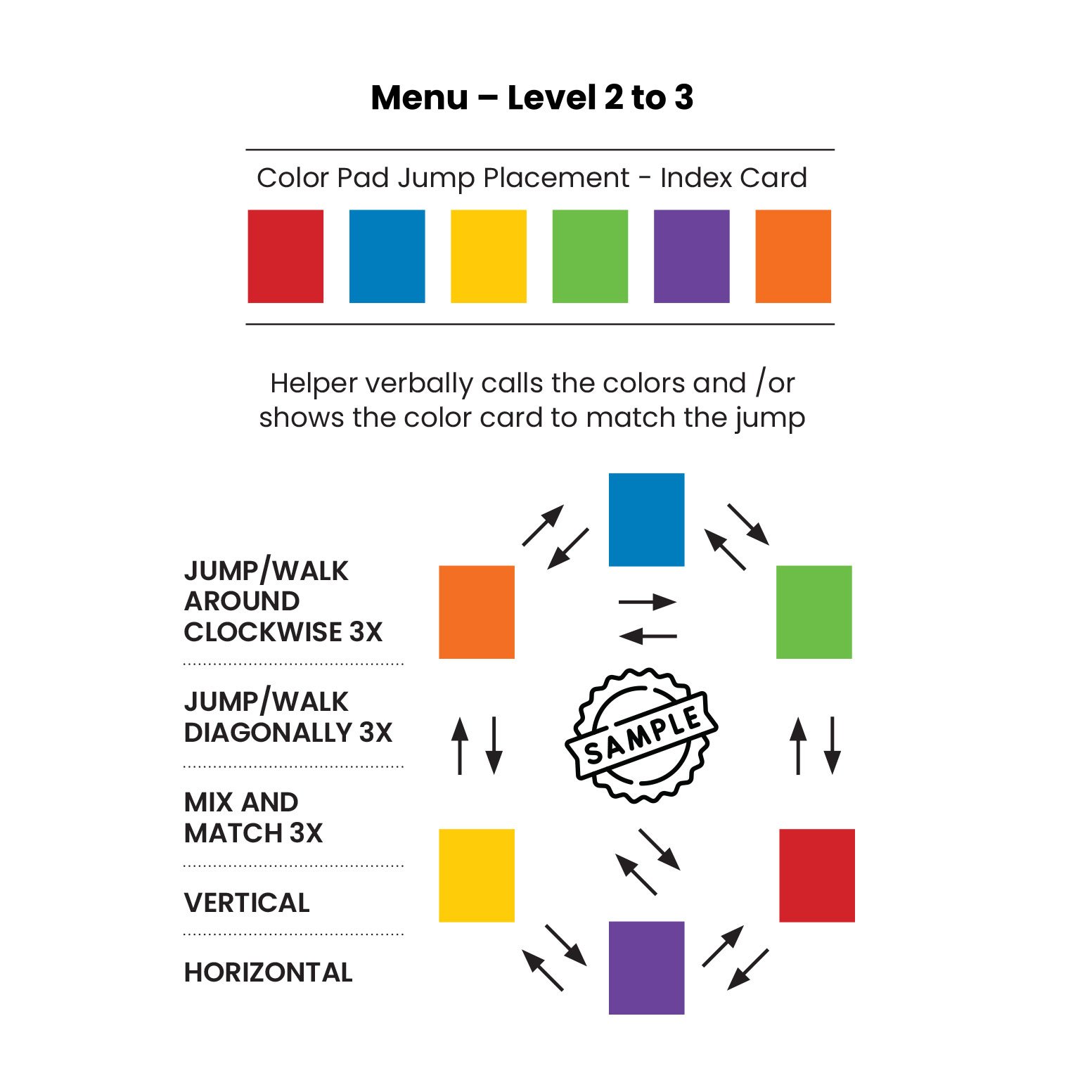– Show the Participant 2 Colored Sequence Cards to demonstrate the order of the jumps.
