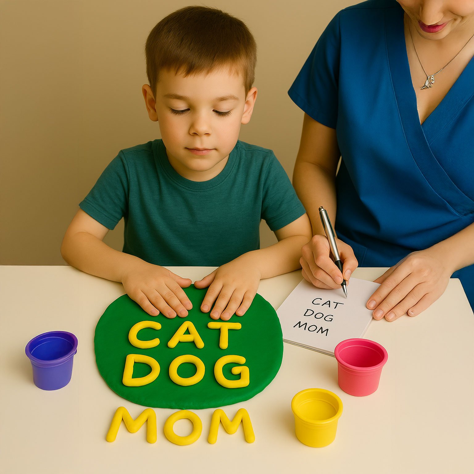 ◦ The child will copy the letters by rolling out Play-Doh and using the cutters to form the letters of the words written by the helper.