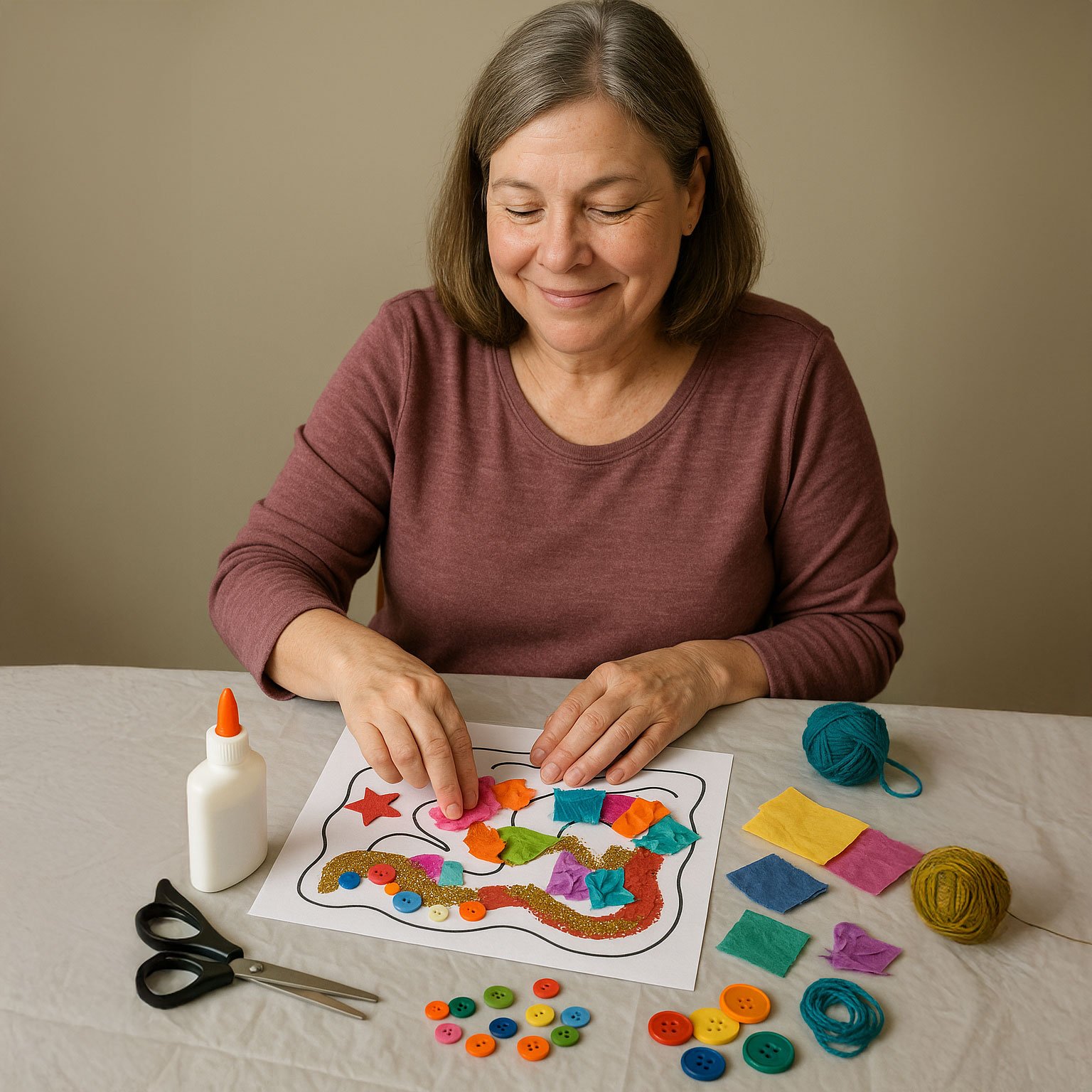 – Encourage the Participant to decorate the design by gluing materials onto the outlined areas.